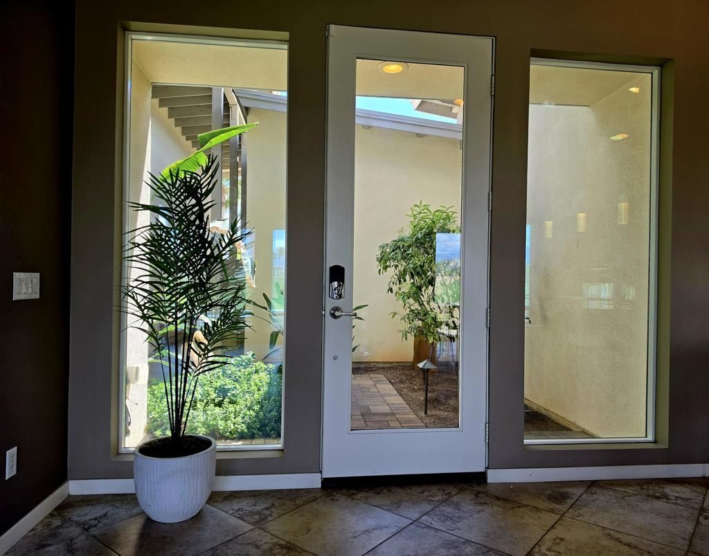 Escena modern home overlooking Golf course to the north and spectacular mountain views to the west from private back patio, and pool/spa.Front gate opens to atria garden area to front door entrance. You are welcomed by a large open living /dining/ kitchen area of casual living refinement. The entire back wall is made up of glass sliders to outside patio, pool/spa and golf course. Master ensuite also has slider to private patio. 2nd and third bedrooms have Jack and Jill bathroom, with 1/2 bath off the living room. Spacious kitchen with custom cabinets, state of the art appliances, and pantry,, including extra fridge in garage beyond laundry room. Large island/breakfast bar, with room for entertaining large family gatherings and/or relaxing on oversized couch, watching events and movies on large 70' TV screen. The fireplace adds to the ambiance and for cooler nights enjoyment. Solar and energy efficiency throughout home. Escena Championship Golf Club and Clubhouse have spectacular views of Palm Springs and mountains beyond. Escena is strategically located within 10 miles of Palm Springs Airport, Hospitals, Casinos, 20 Championship Golf Courses, Major Entertainment Venues, Hiking & Biking trails , Waterpark. and , of course , many restaurants and shopping!May -Nov.2026 (6 months) = $3500 month11/15/26-4/30,/27 (4-6 months) $8400 mo.